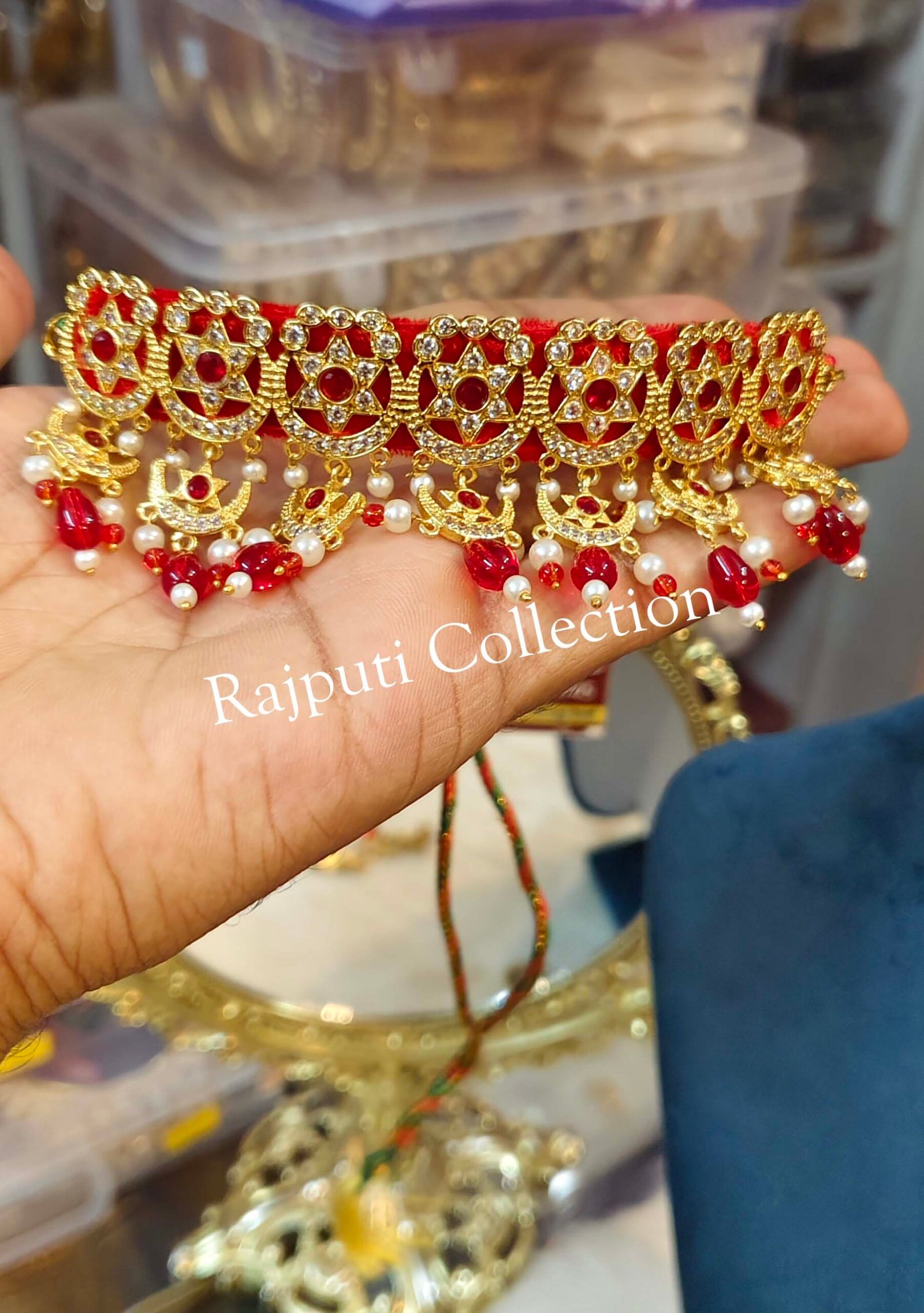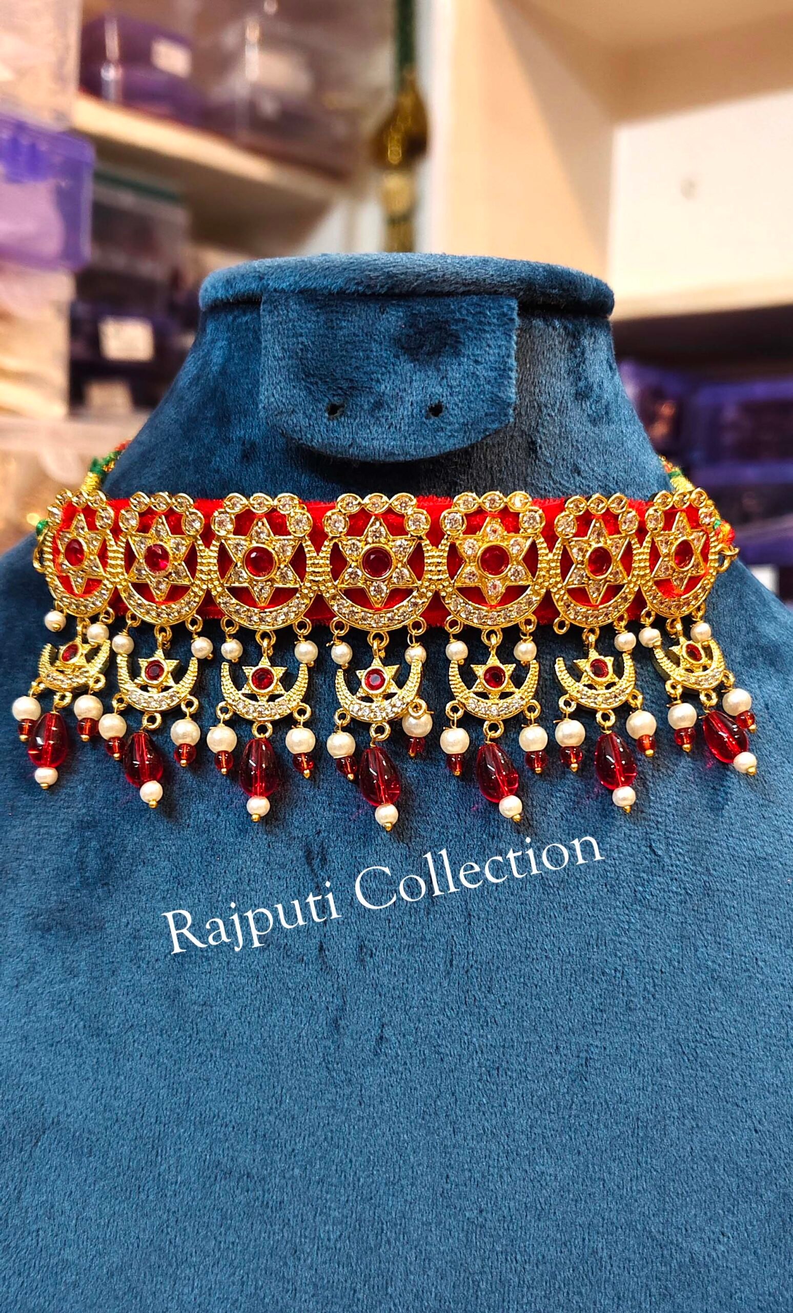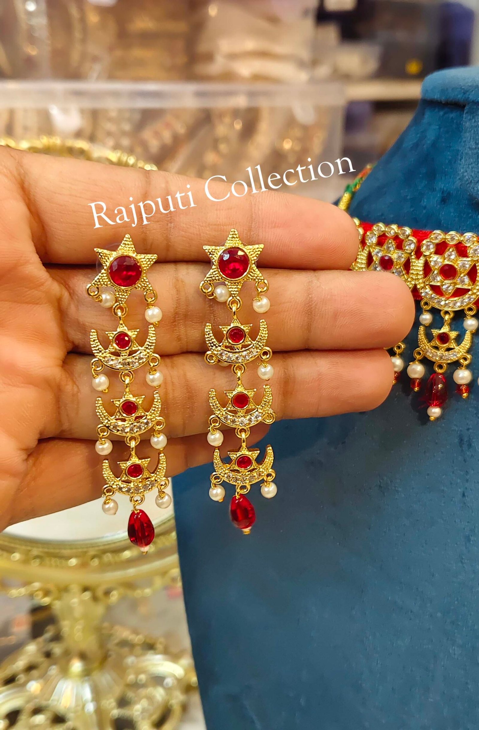 Step into regal elegance with this Rajwadi Neckset and Earring set. Inspired by royal heritage, it features intricate designs and rich detailing — perfect for weddings, traditional events, and festive celebrations.