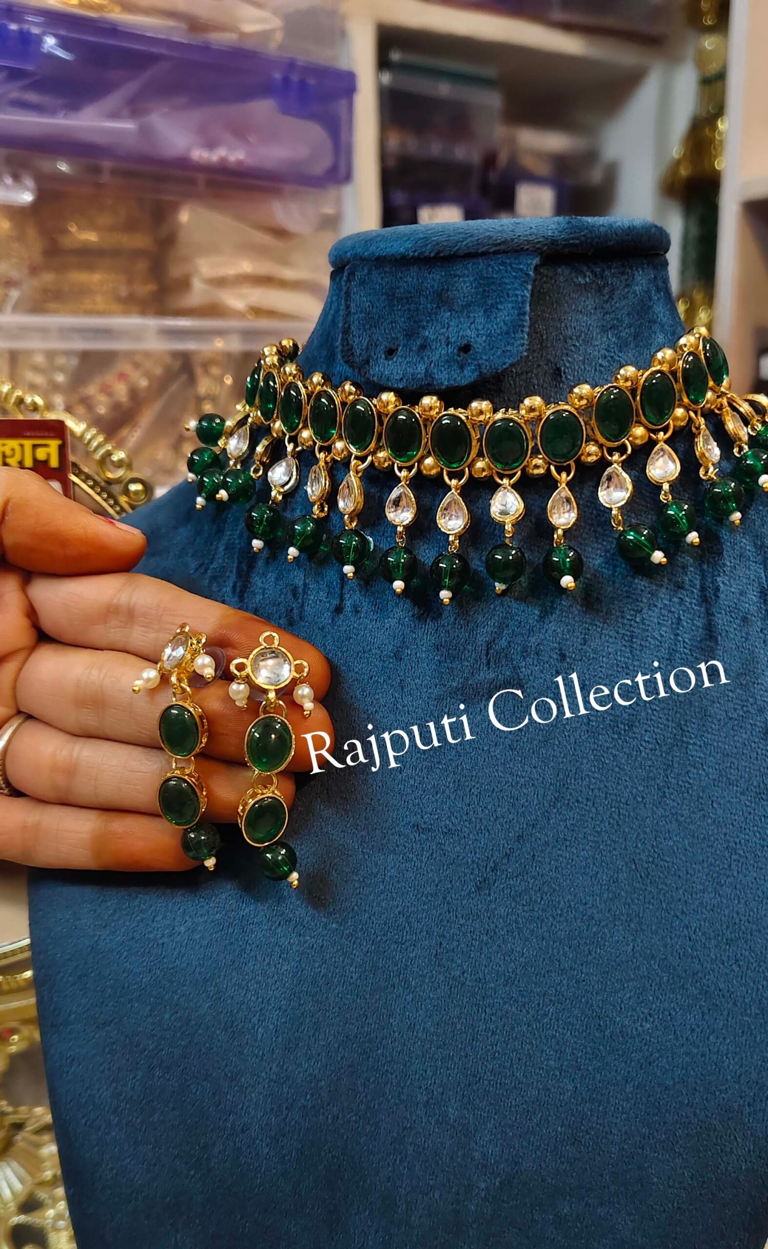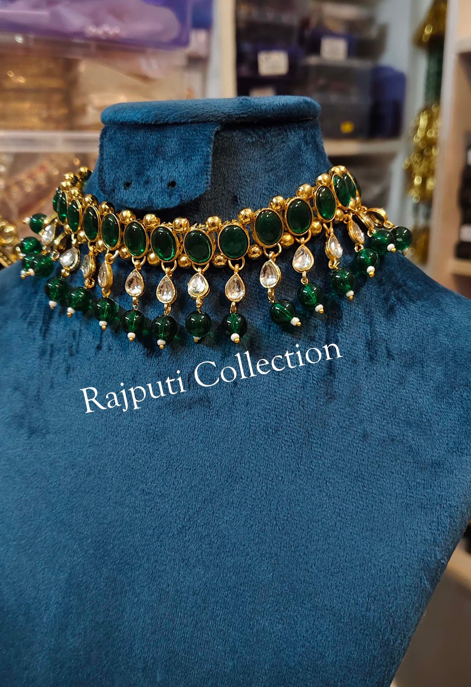 Add royal charm to your look with this Traditional Kundan Necklace and Earring set. Featuring timeless craftsmanship and intricate detailing, it’s a perfect pick for weddings, festivals, and special occasions.