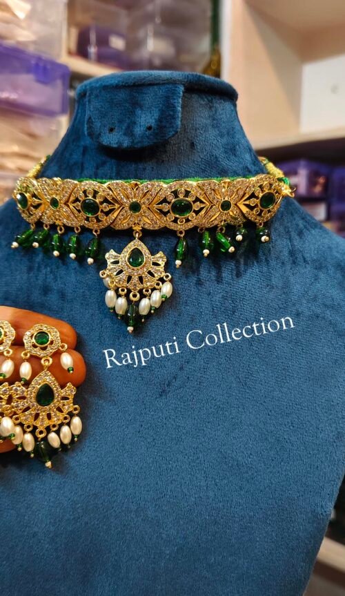 Make a graceful statement with this Traditional Neckpiece and Earring set, available in rich Red or classic Green. Designed with intricate detailing and a radiant finish, it’s the perfect match for festive and ethnic wear.